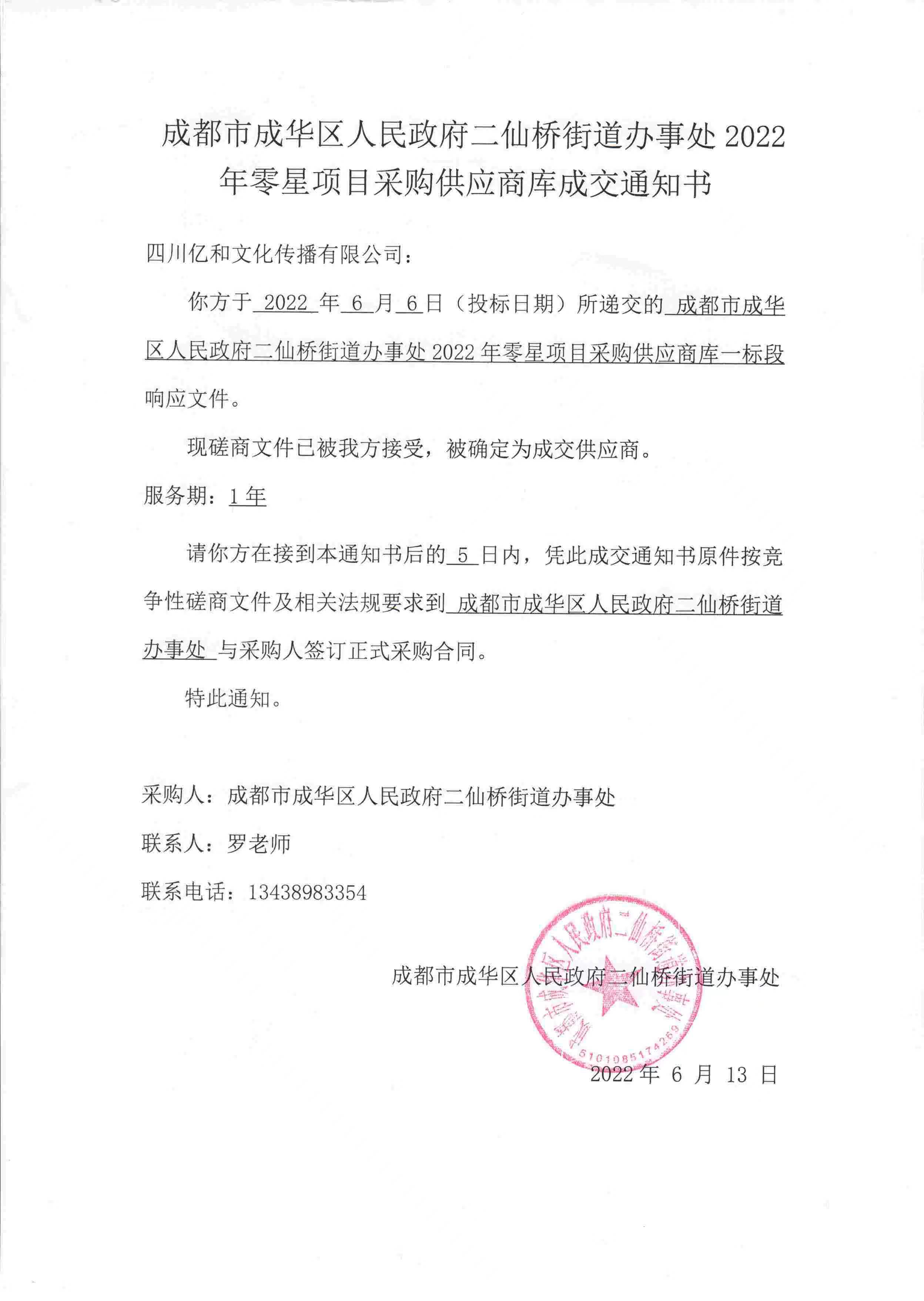 【喜訊】公(gōng)司中(zhōng)标2022年“成都市成華區(qū)人民(mín)政府府青路街(jiē)道辦(bàn)事處2022-2023年度日常印刷廣告制作(zuò)服務(wù)供應商(shāng)采購(gòu)項目”!