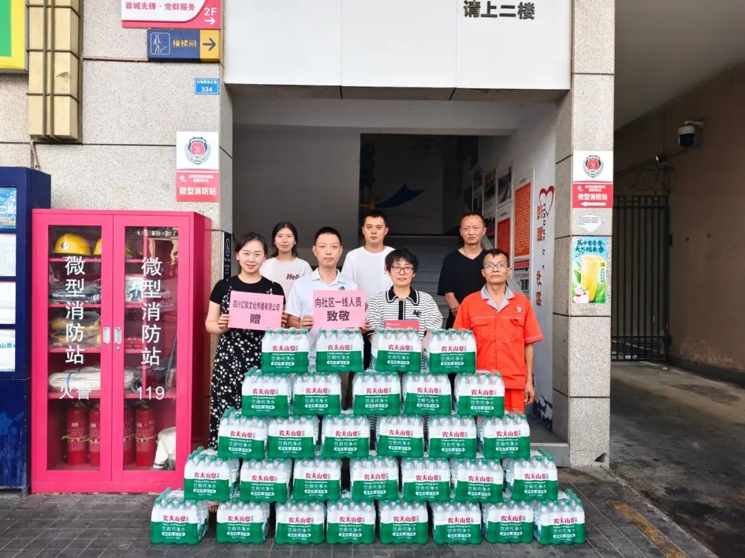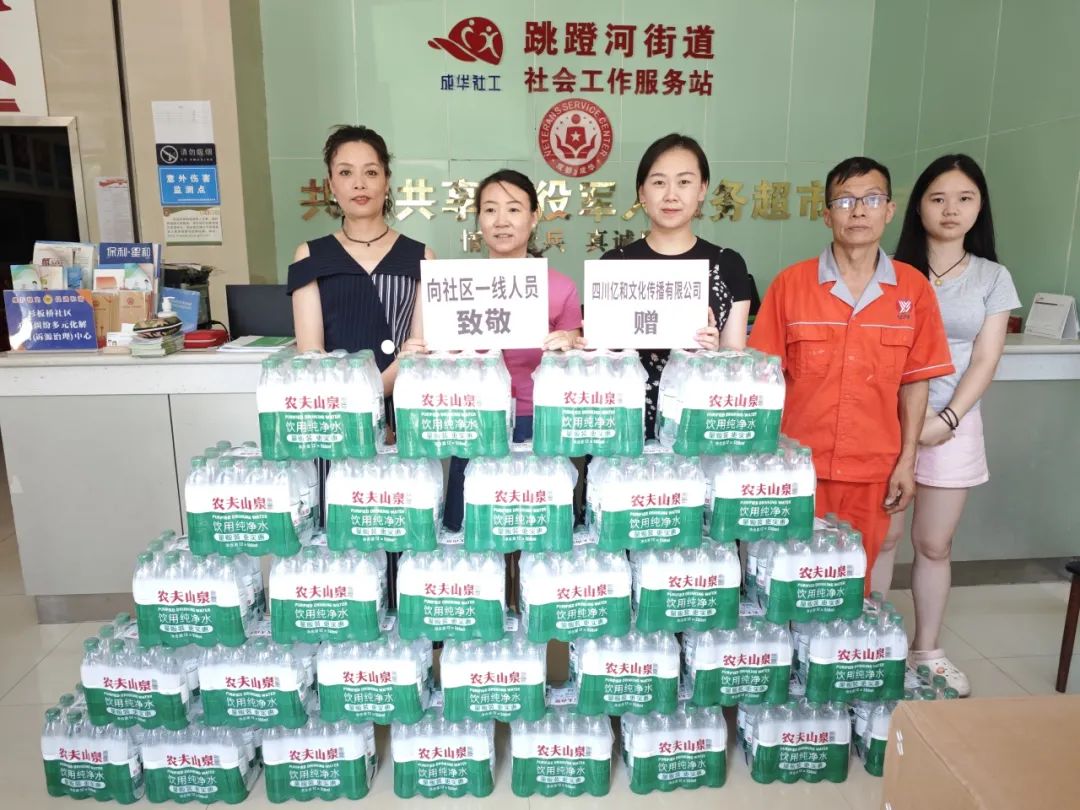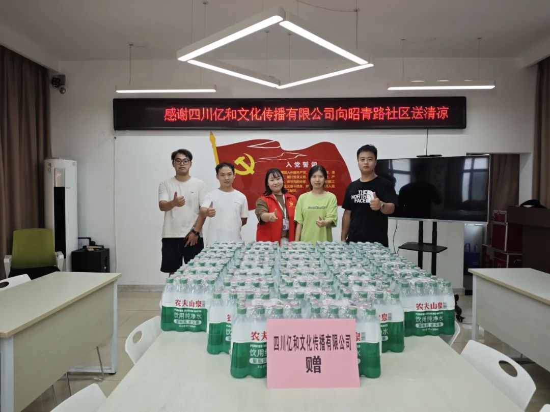 持續的高溫天氣給堅守崗位的職工(gōng)們帶來了不小(xiǎo)的“烤”驗。為(wèi)了做好防暑降溫工(gōng)作(zuò),緻敬每一位在高溫堅守的員工(gōng),四川億和文(wén)化傳播有(yǒu)限公(gōng)司特地開展“送清涼”活動,将清涼分(fēn)别送往成華區(qū)青龍街(jiē)道、府青路街(jiē)道、白蓮池街(jiē)道、跳蹬河街(jiē)道、保和街(jiē)道、雙水碾街(jiē)道,6個街(jiē)道,38個社區(qū)。