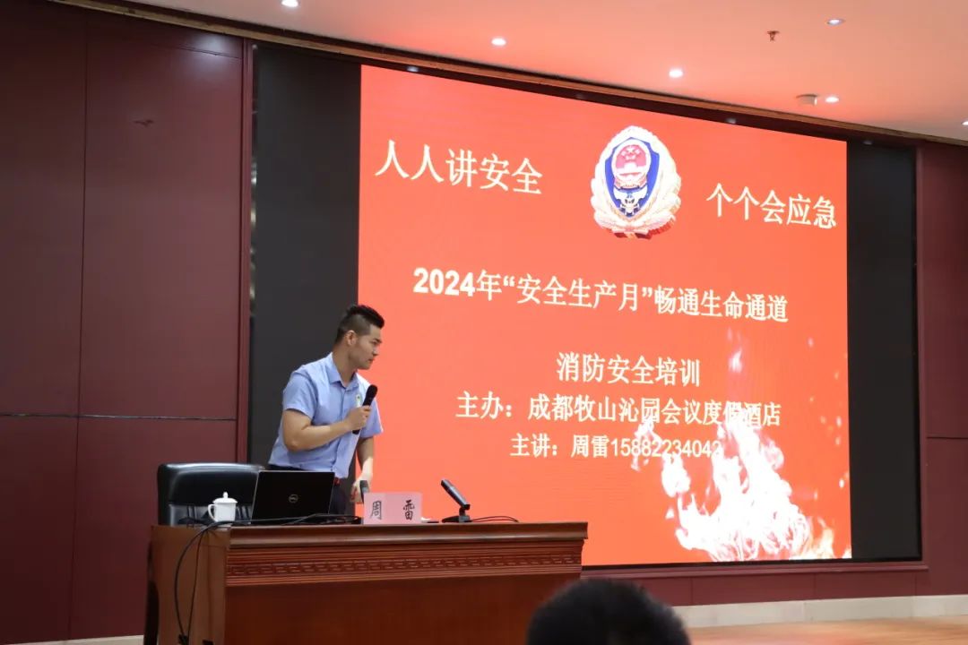 2024年6月26日上午,四川省應急專家周磊為(wèi)牧山(shān)沁園酒店(diàn)全體(tǐ)員工(gōng)做安(ān)全生産(chǎn)、應急疏散演練培訓宣講。